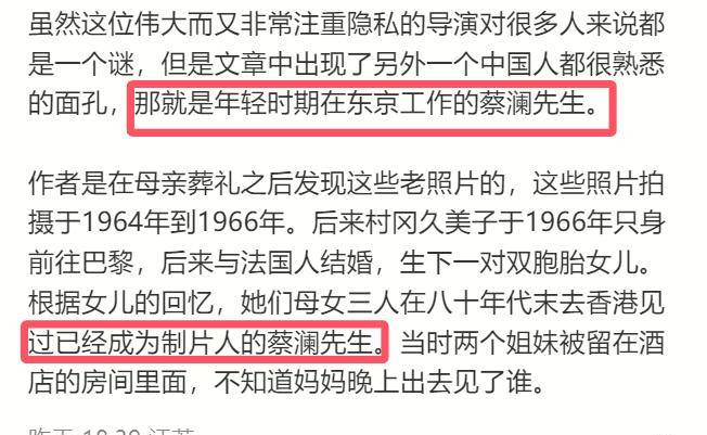 传言蔡澜一生风流多情,众多前女友,但从他对村冈美子的态度来看,显然并非薄情寡义之人。